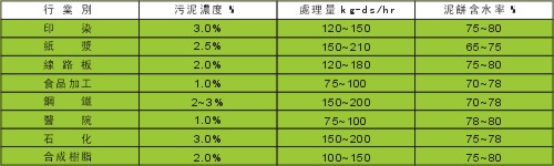 注:处理量因污泥浓度及污泥种类不同而异 |